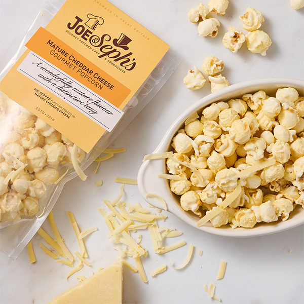 Our luxuriously rich and creamy mature cheddar popcorn is affectionately hand-crafted by Joe and his team of pastry chefs in our London kitchen.